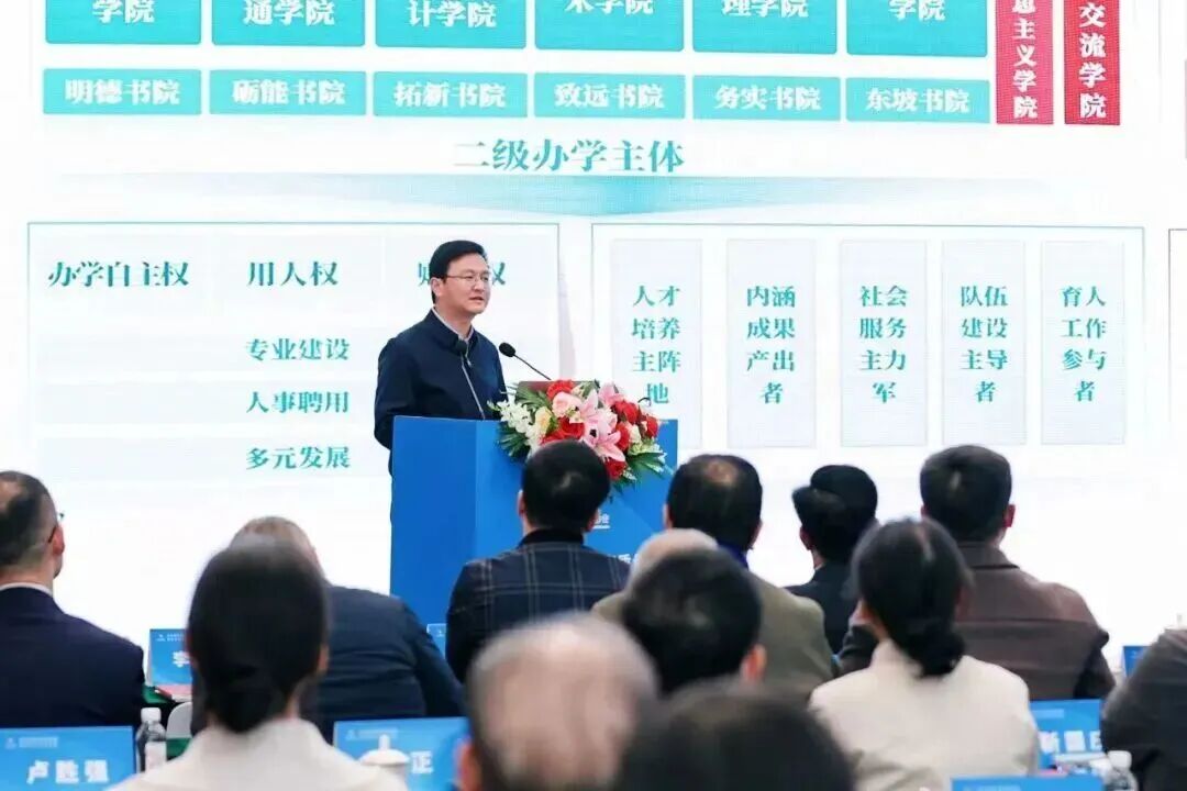 陈东海在致辞中表示,组建民办高职院校高质量建设协作体是贯彻教育强国部署的重要举措,广东省教育厅将大力支持协作体建设,期待更多改革试点和创新实践落地广东。